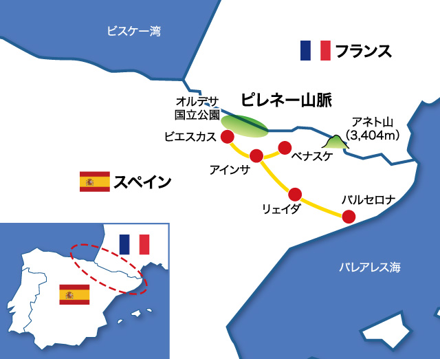 | 2 | 午後 | 着後、専用車にてピレネー山麓の町ベナスケヘと移動します。 |