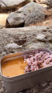 山で食べる食事は、スーパーやコンビニで買ってきたおにぎりやパンも美味しいです・・・